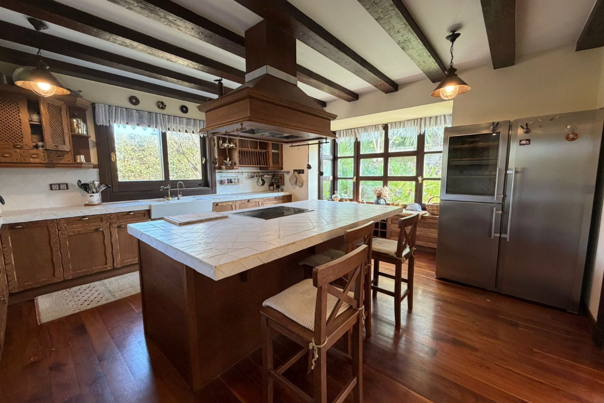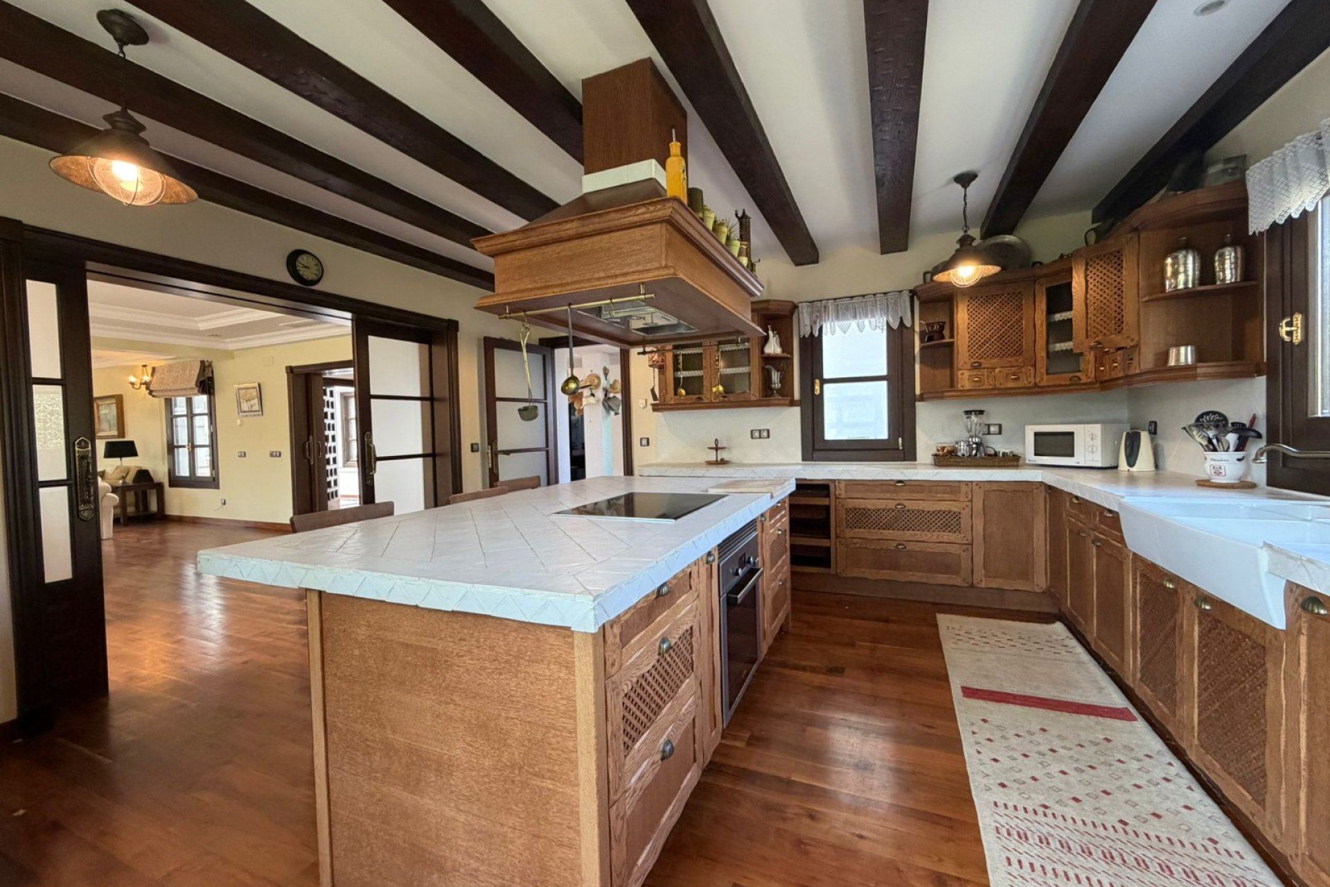 Descubre esta impresionante villa de estilo mediterráneo, ubicada en la codiciada segunda línea del mar de Cabo Roig. Con una generosa parcela de 1,100 m², esta propiedad es un verdadero refugio que combina elegancia y comodidad. Al entrar, te recibe un amplio pasillo que conduce a un luminoso salón con chimenea, ideal para disfrutar de momentos acogedores en familia. La cocina independiente, equipada con acabados de alta calidad, es perfecta para los amantes de la gastronomía.